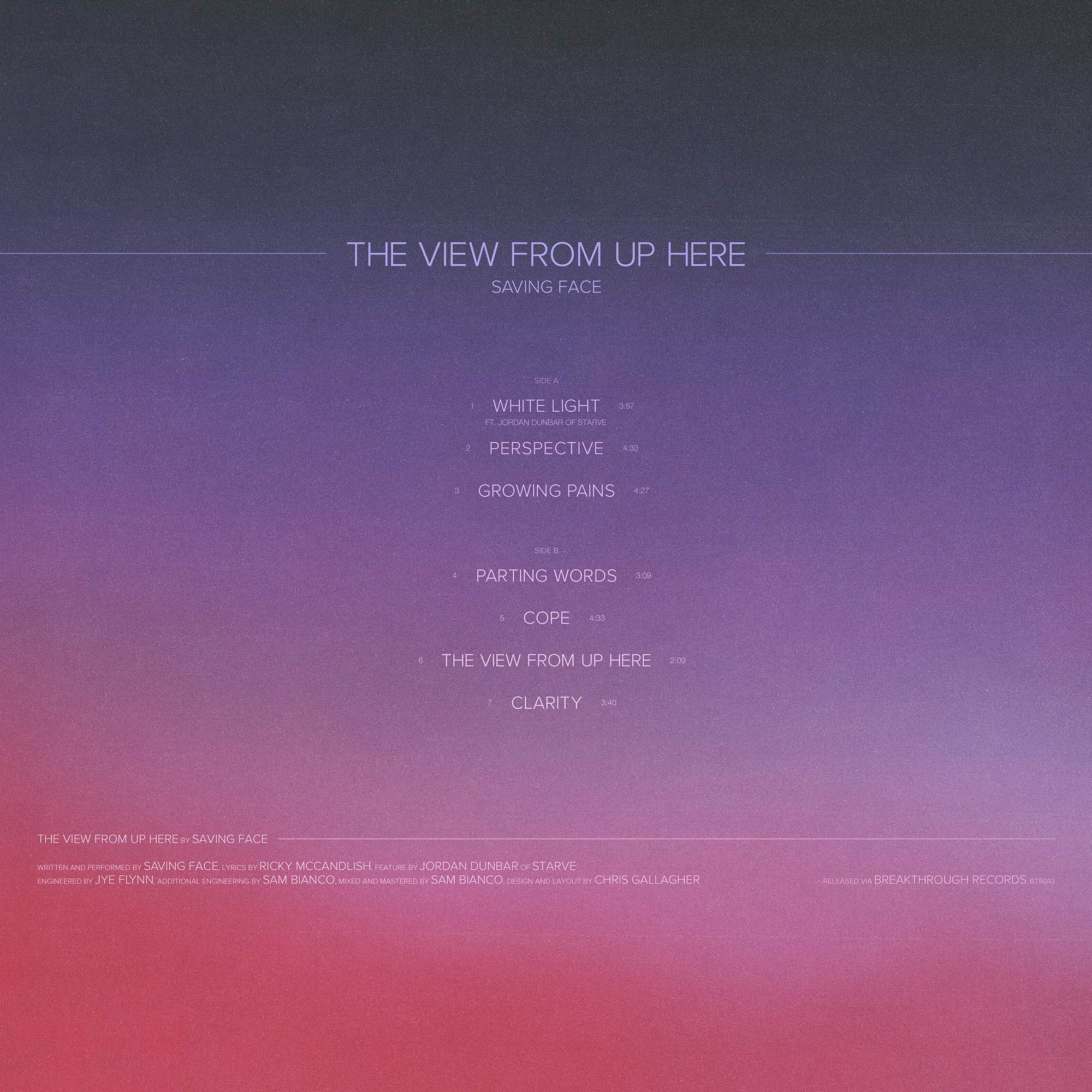 An ultra minimal artwork package and layout for Australian melodic hardcore band, Saving Face, and their album "The View From Up Here".