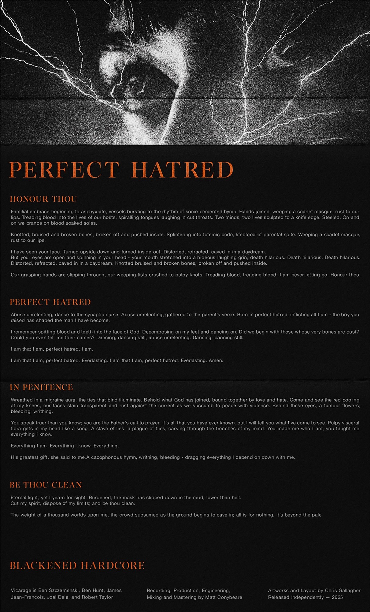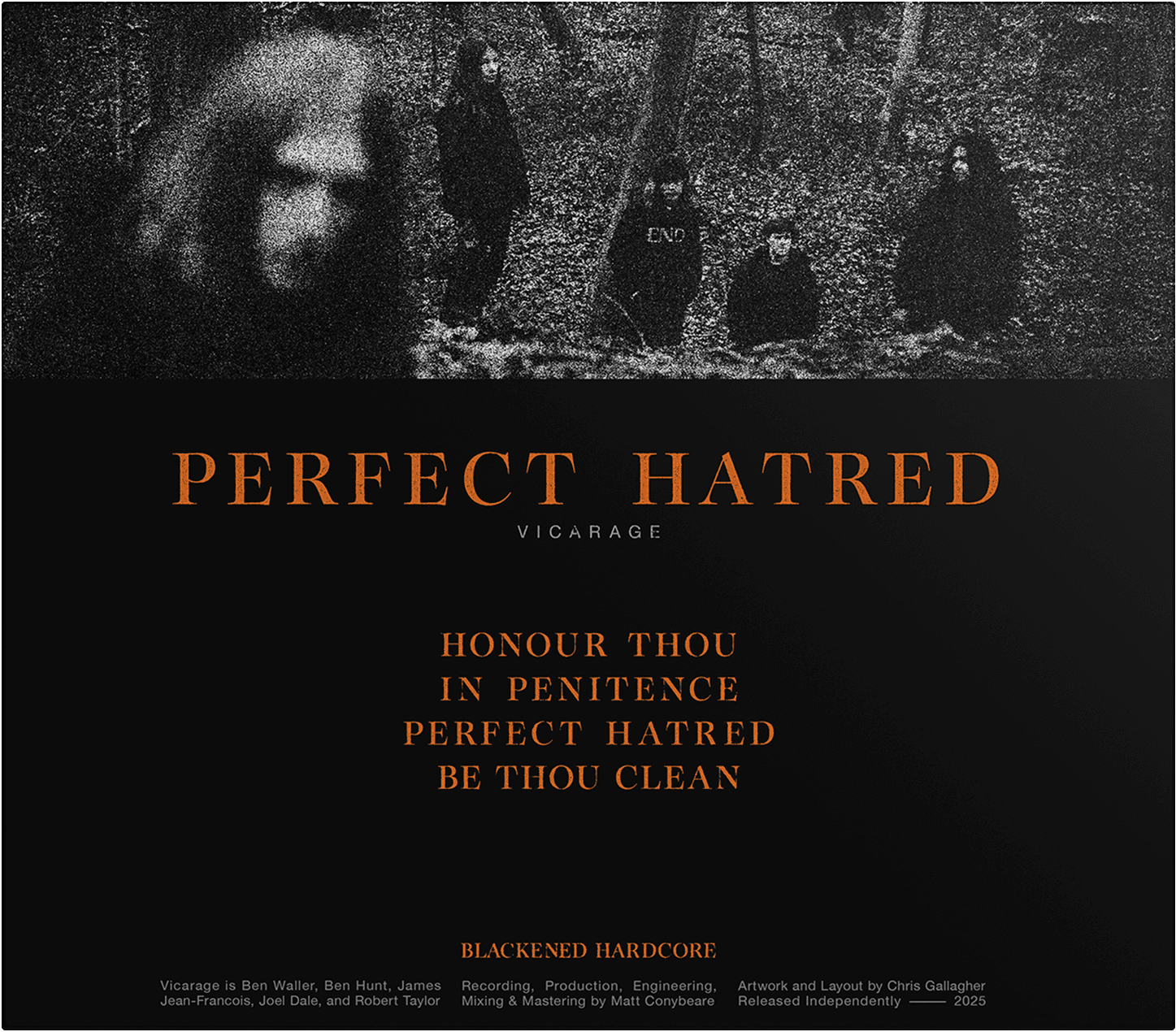 Artworks and packaging layout for British blackened-hardcore outfit Vicarage, and their debut EP, "Perfect Hatred".