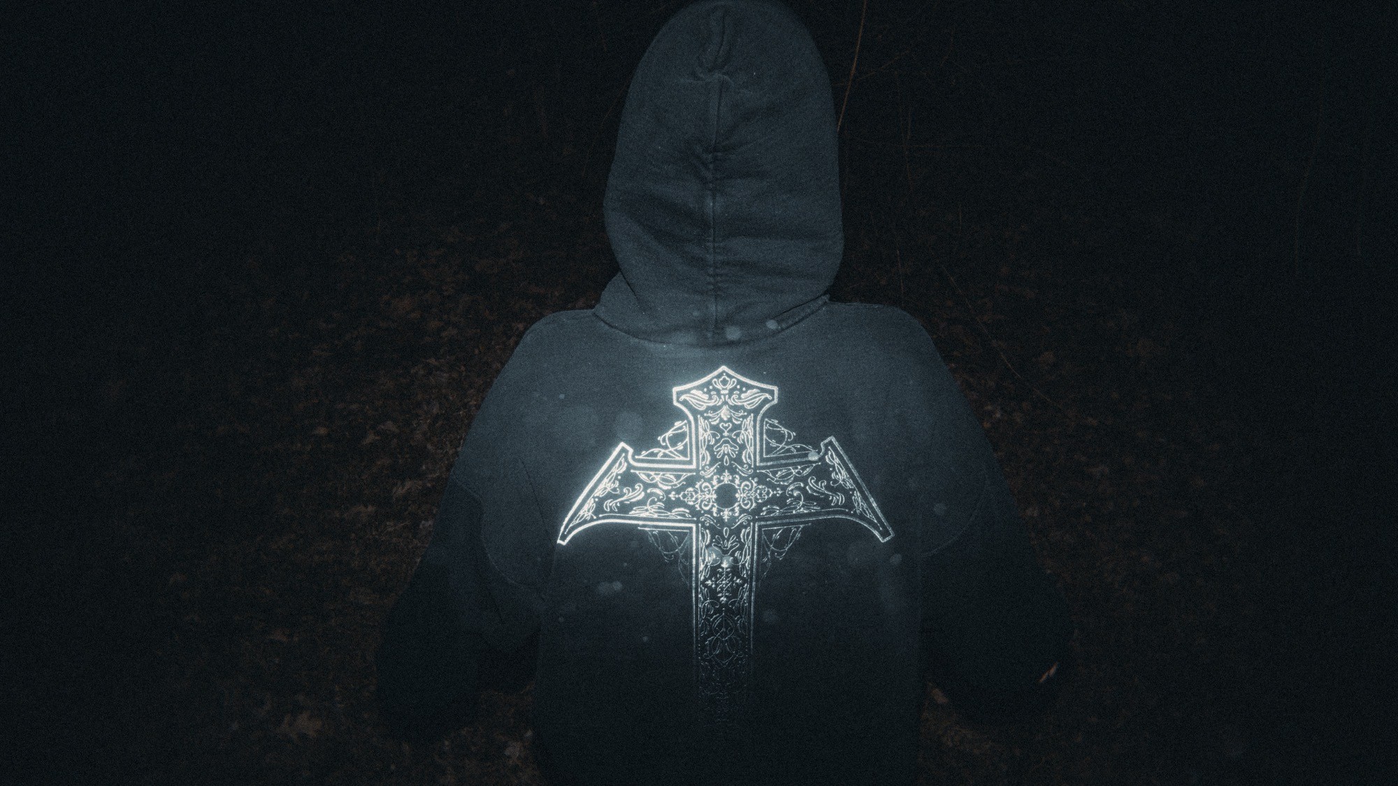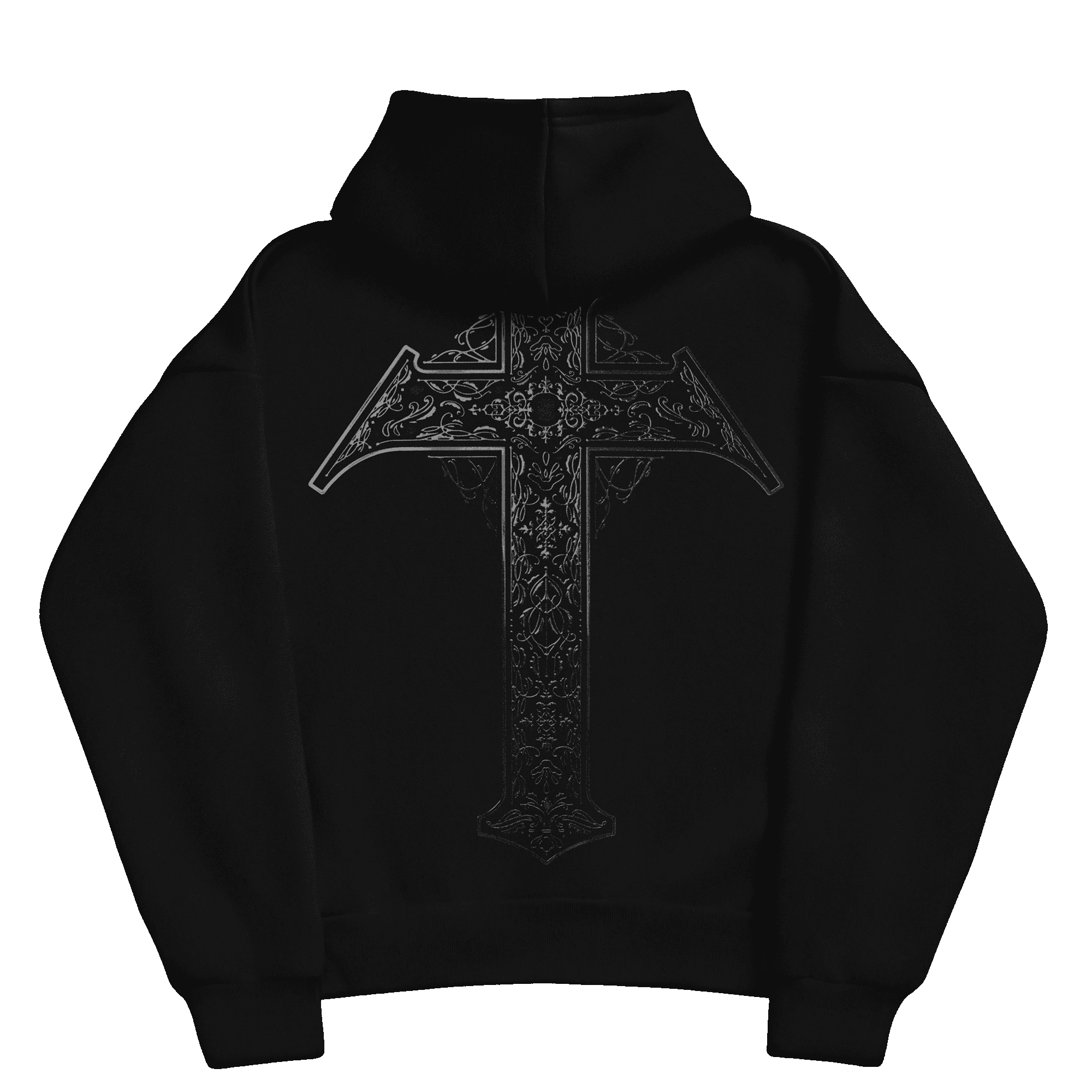 An evolution of a bespoke Crucifix for Echos, built from the logotype I designed for her, this version is an ornamented and chromed version for an oversized back print.