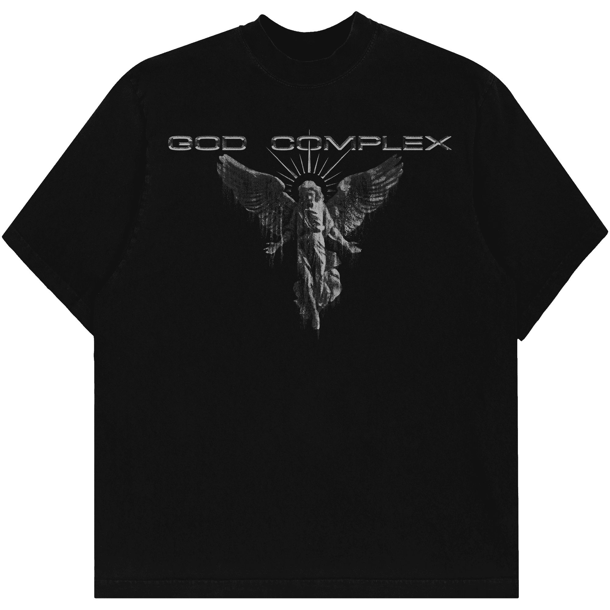 A t-shirt design for British metalcore band God Complex, for their 2025 EU tour with Counterparts, Sunami, and One Step Closer.