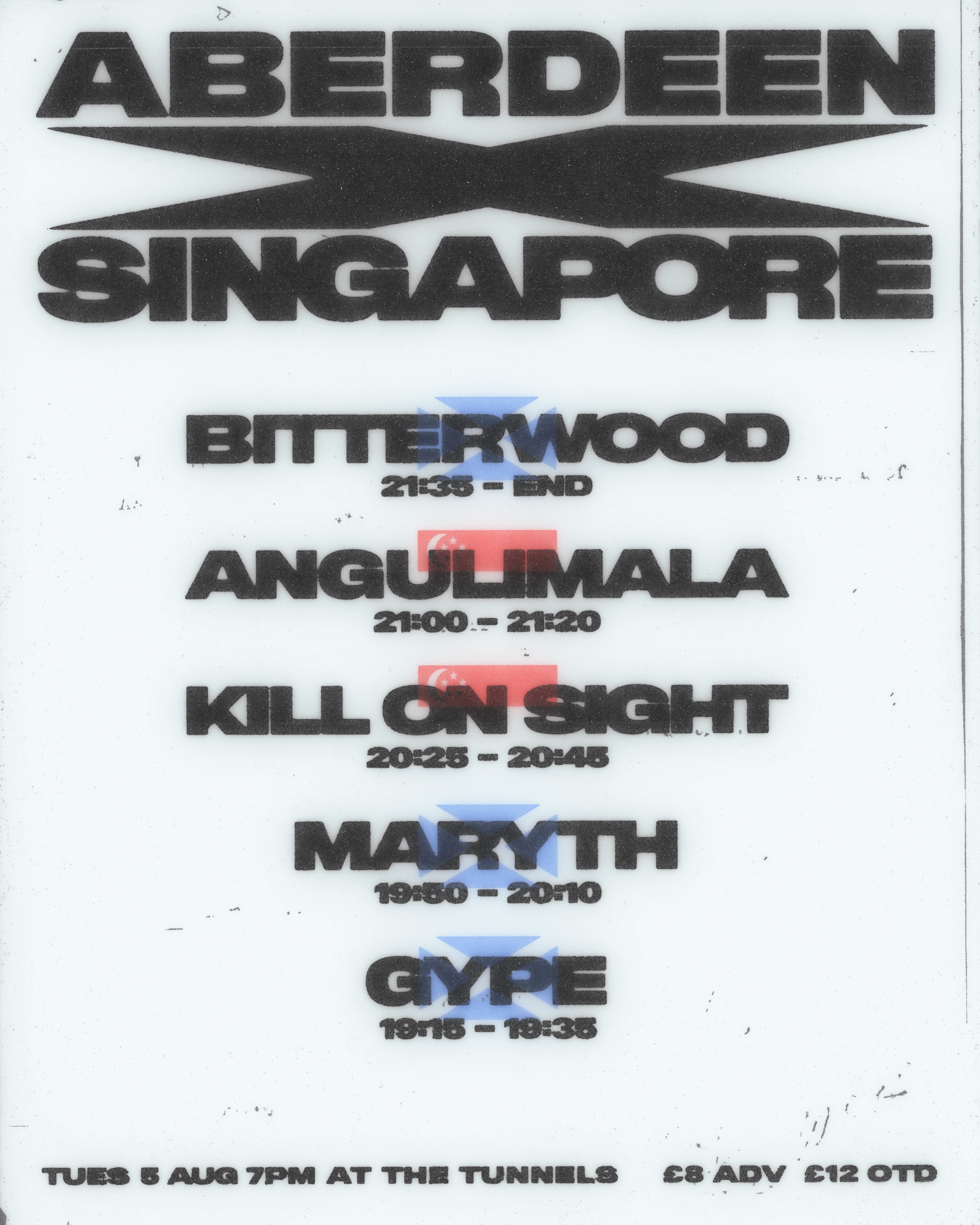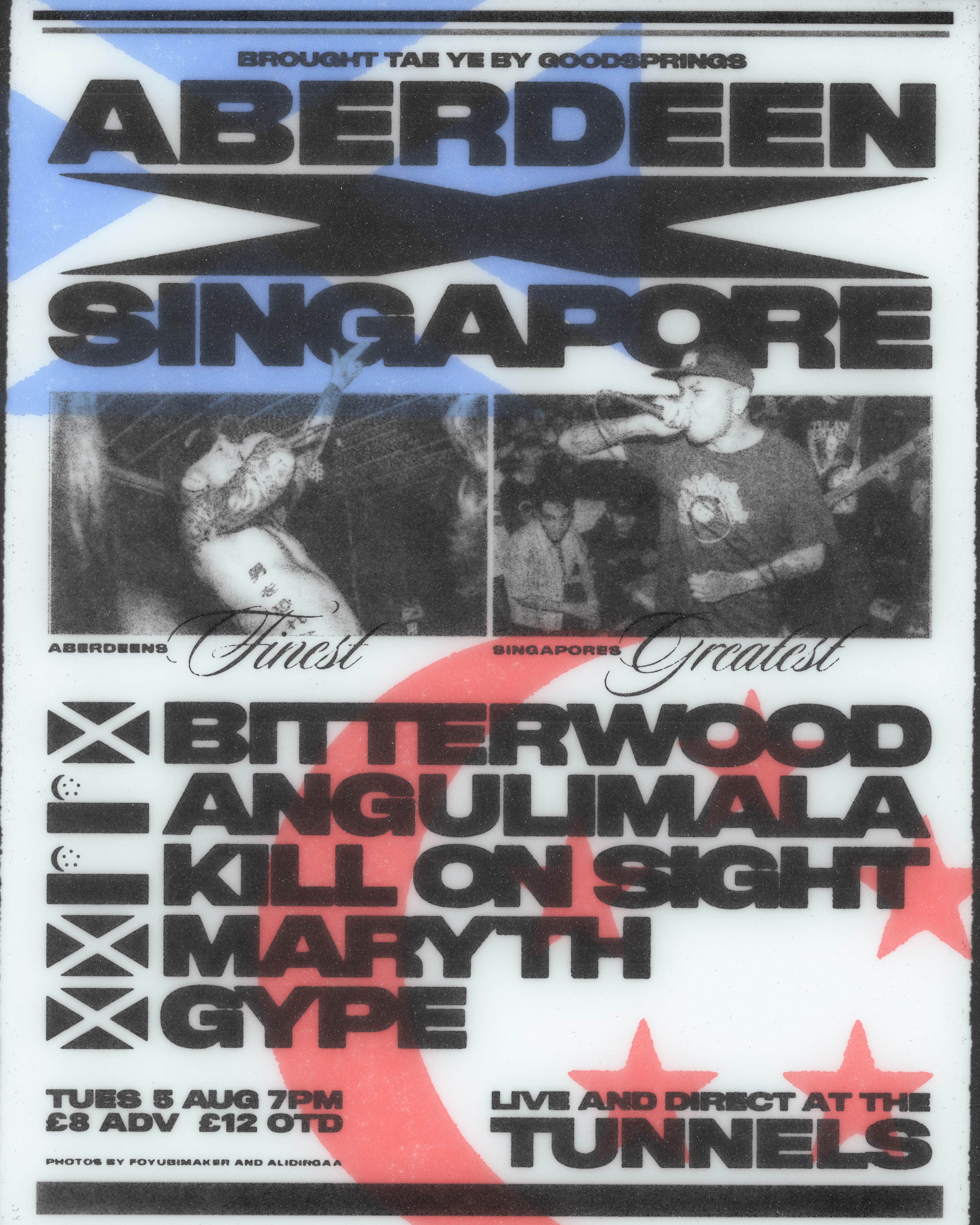 An event flyer and an additional set times flyer for Goodspring Promotions, and their metalcore show featuring Aberdeen bands and touring Singaporean bands.