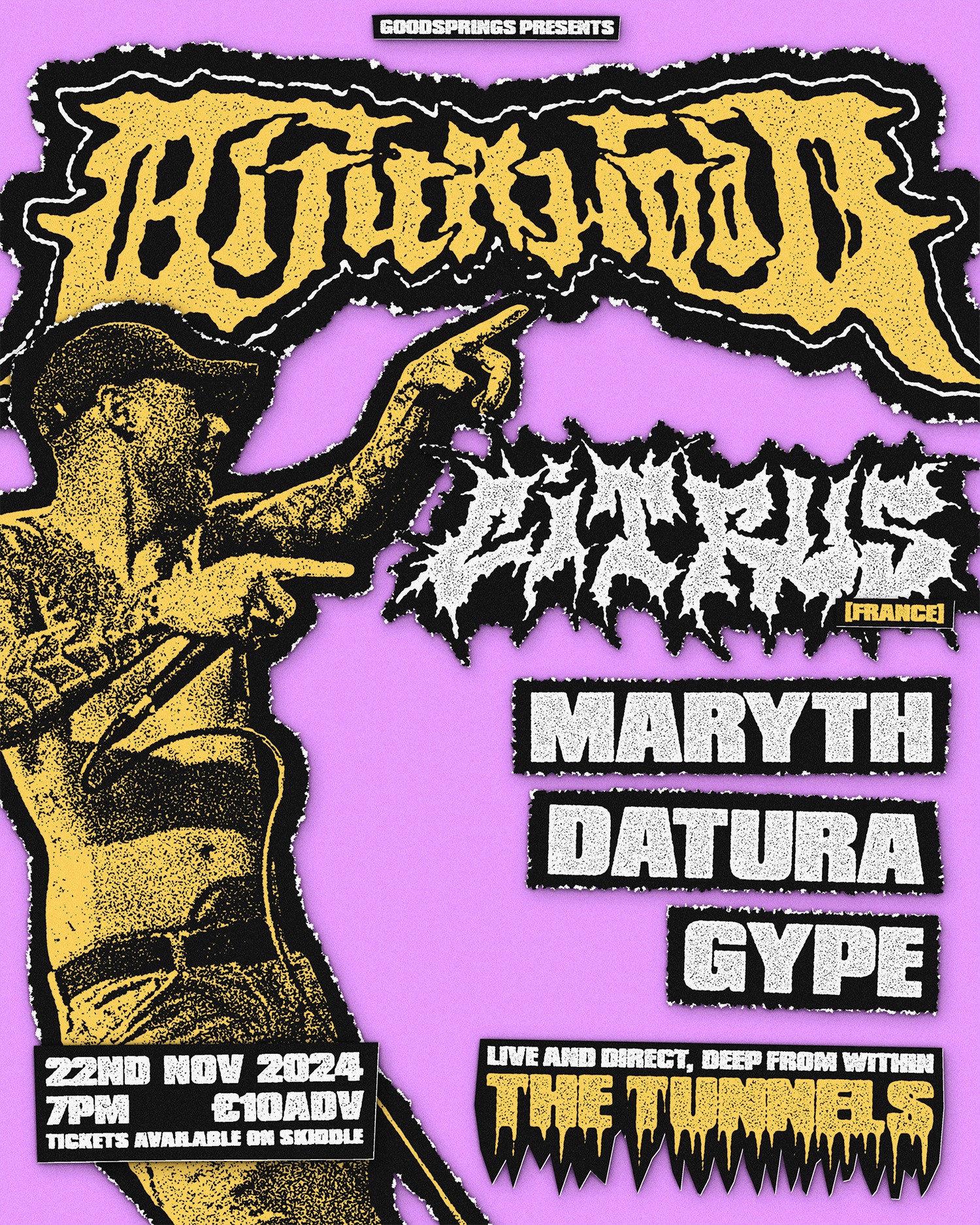 An event flyer for Goodsprings Promotions and Scottish metalcore band Bitterwood, and their 2024 headline event.
