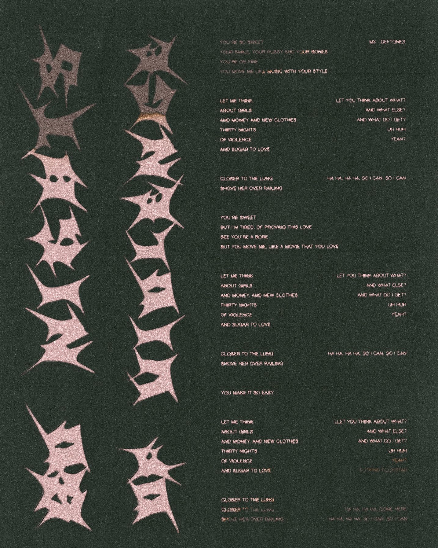 I was listening to a lot of Deftones around the time I designed this, so their lyrics inspired the copy and subject imagery.