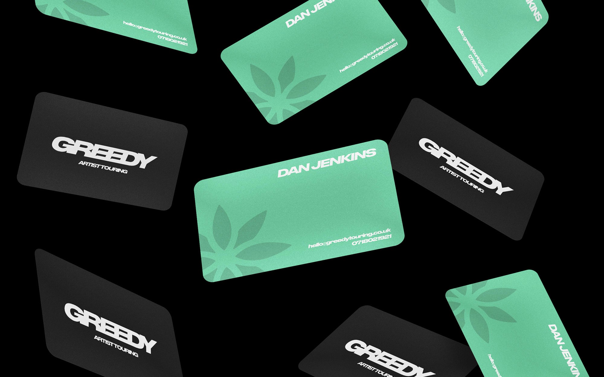 A branding system and website design for artist touring company, Greedy.