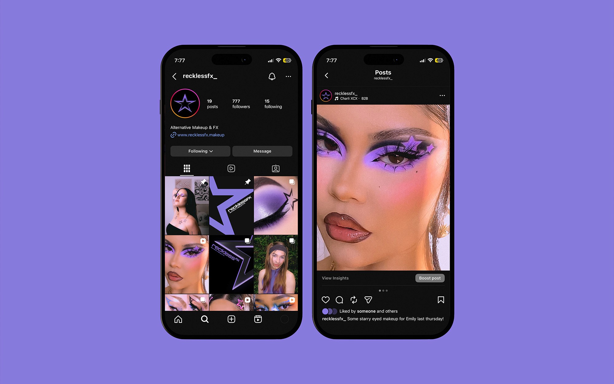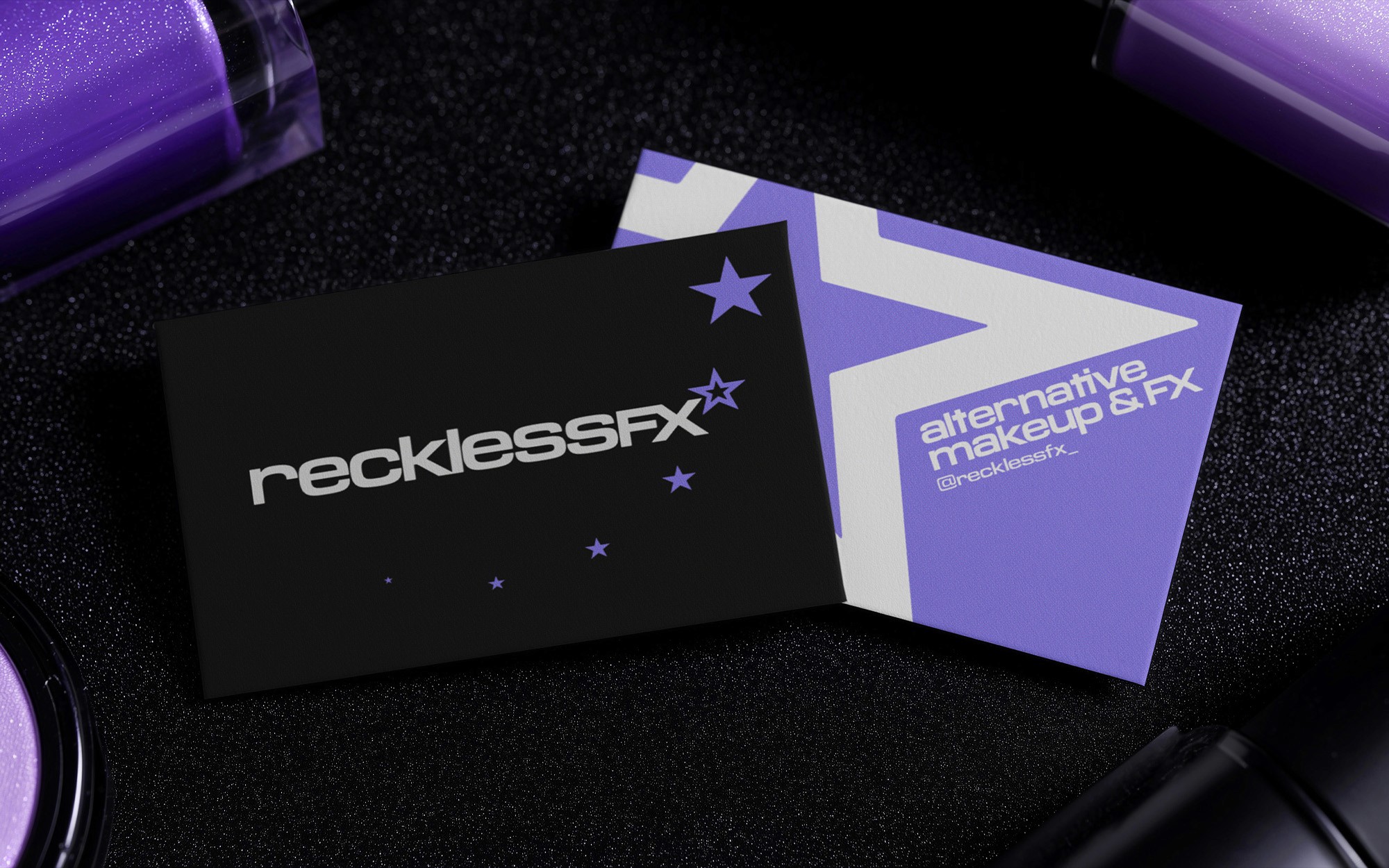 A playful and striking branding system for alternative makeup artist and brand, RecklessFX.